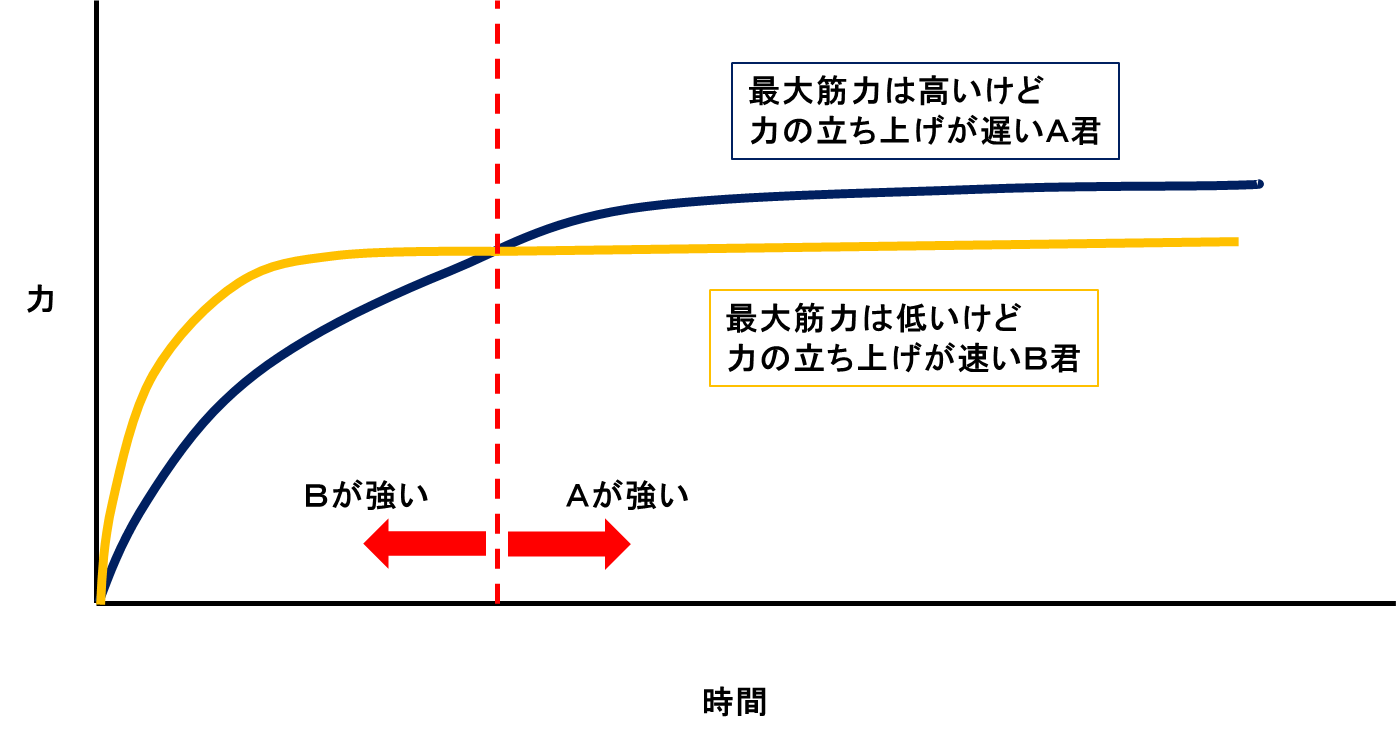 どんな運動でも、最大の力を発揮するには少し時間がかかり、これは個人の特性や運動ごとに変化していきます。