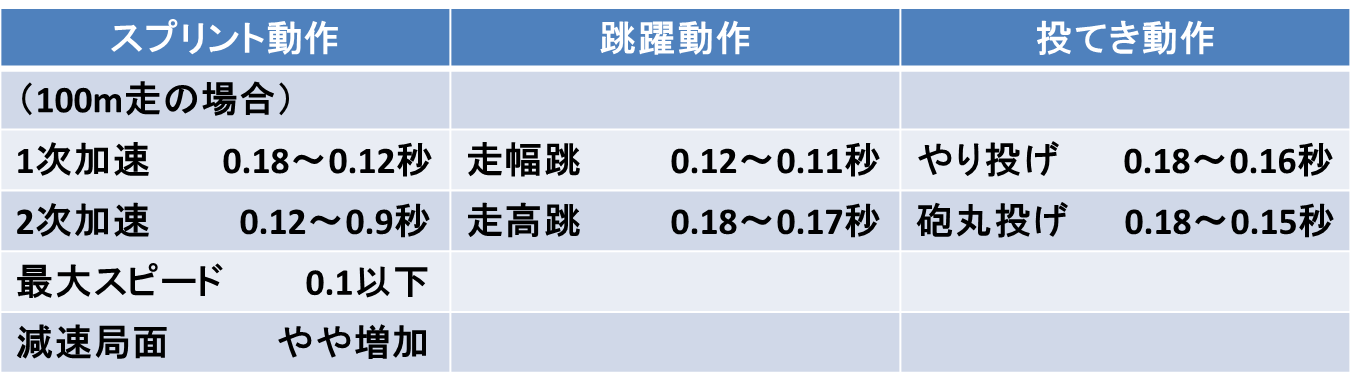 踏切運動では地面へ力を伝達できる時間、投擲では投擲物に力を加えることができる時間がだいたい決まっているので、その間にいかに高い力を発揮できるかどうかは非常に重要な体力要素と言えるでしょう。